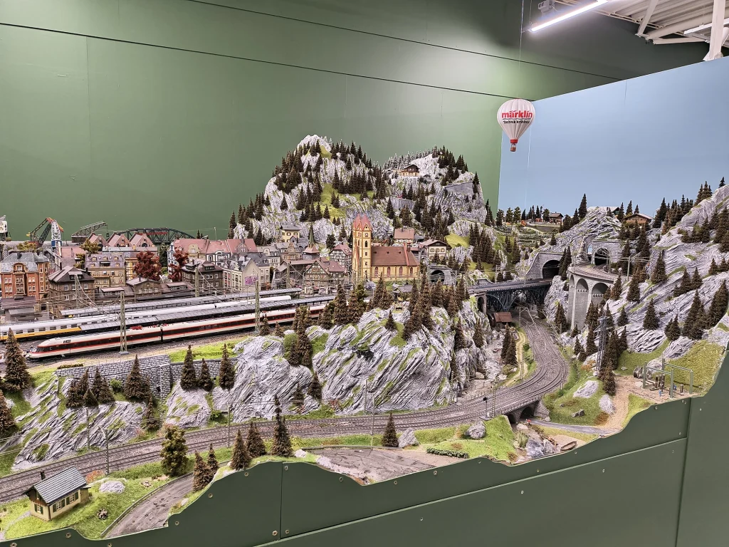 Het is één van de paradepaardjes van het museum, voorzien van groene drukknoppen om de treinen te laten rijden. En wat is het leukste; start de snelle ICE trein en probeer hem bij te houden.